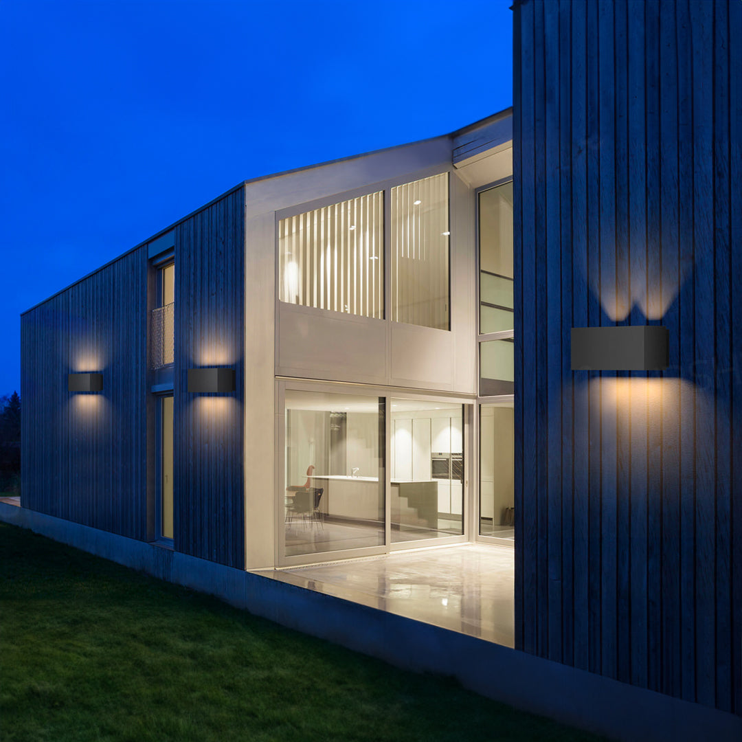 Allure Outdoor LED Wall Light features an ADC12 aluminum housing, providing superior thermal management. This luminaire has a unique up-and-down lighting design and adjustable beam angles via a flexible aluminium plate.