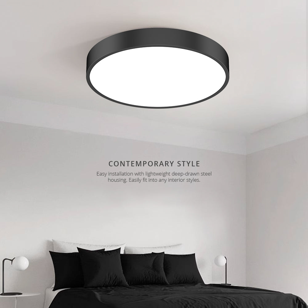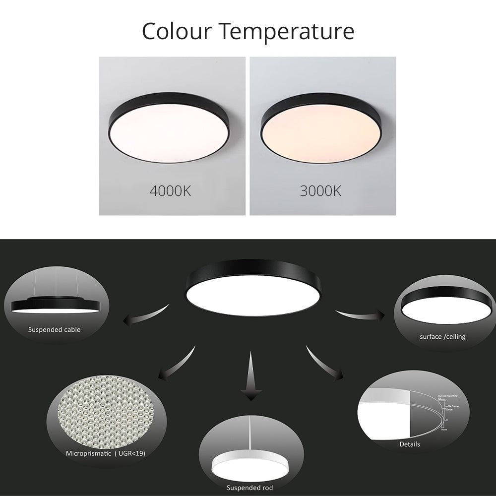 Bright Circle B Series Black Ø300/435/585/735mm LED Ceiling Mounted Light - Suspension Option (Up/Down or Downward)