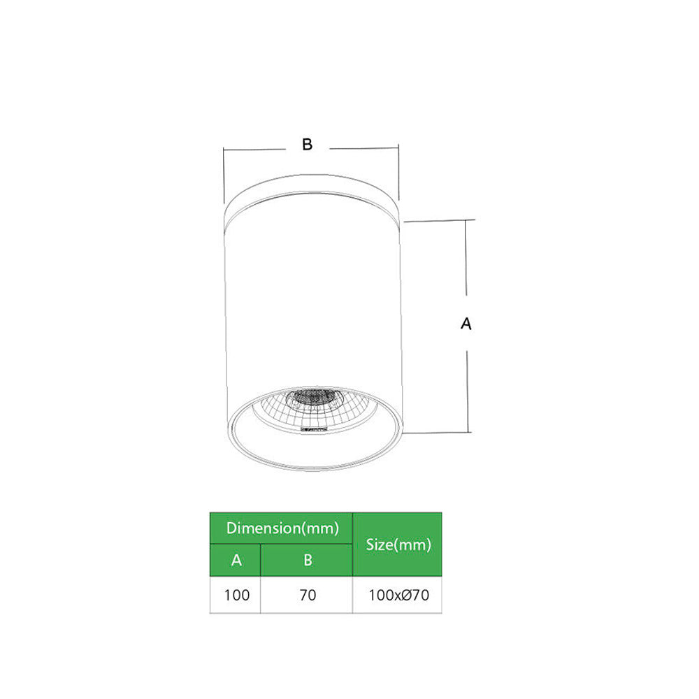 SD100 Black 10W Ø70*100mm LED Cylinder Surface Mounted Spot Light (Downlight)